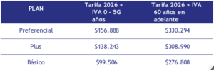 *Los valores presentados se encuentran vigentes hasta el 31 de Diciembre de 2026.
